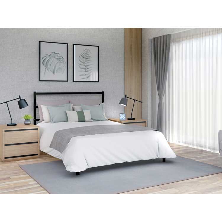 Queen Platform Bed Frame - Black Metal Bed with Headboard