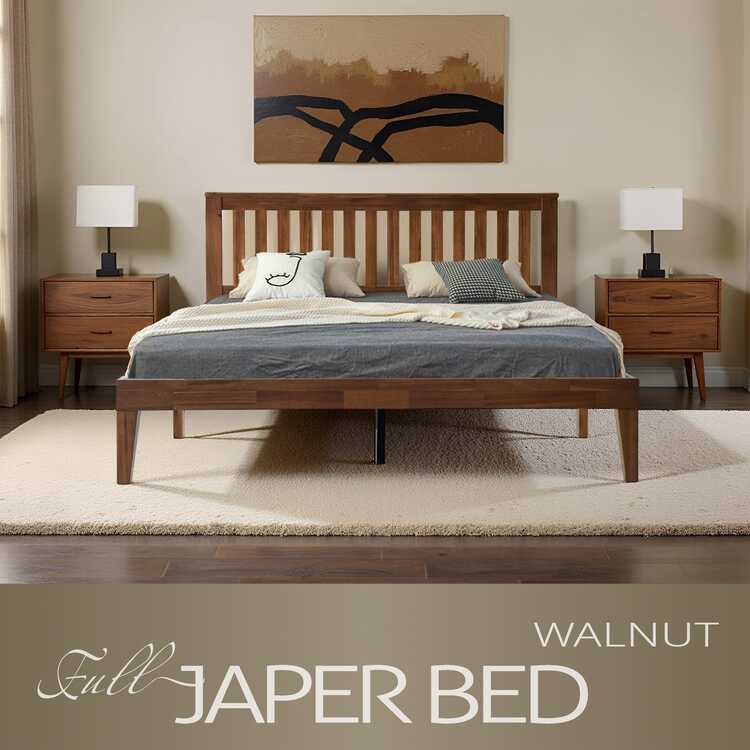 • East West Furniture Full Size Bed Frame with Headboard & Footboard, Solid Wood Platform Bed, Anti-Noise & Slip-Free, 12 Strong Slatted Structure with Metal Legs, No Box Spring Needed, Easy Assembly, Walnut Finish, JPF-37 image - 1