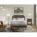 • Dark Brown Faux Leather Platform Bed & Jacobean Distressed Night Stand Set image - 1