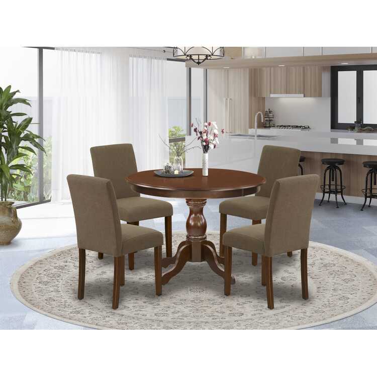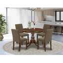 • 5 Piece Round Dining Set - Kitchen Table & 4 Chairs - Mahogany Finish image - 1