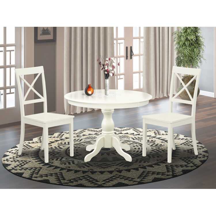 • 3 Piece Dining Set Linen White Small Table 2 X-Back Chairs image - 1