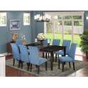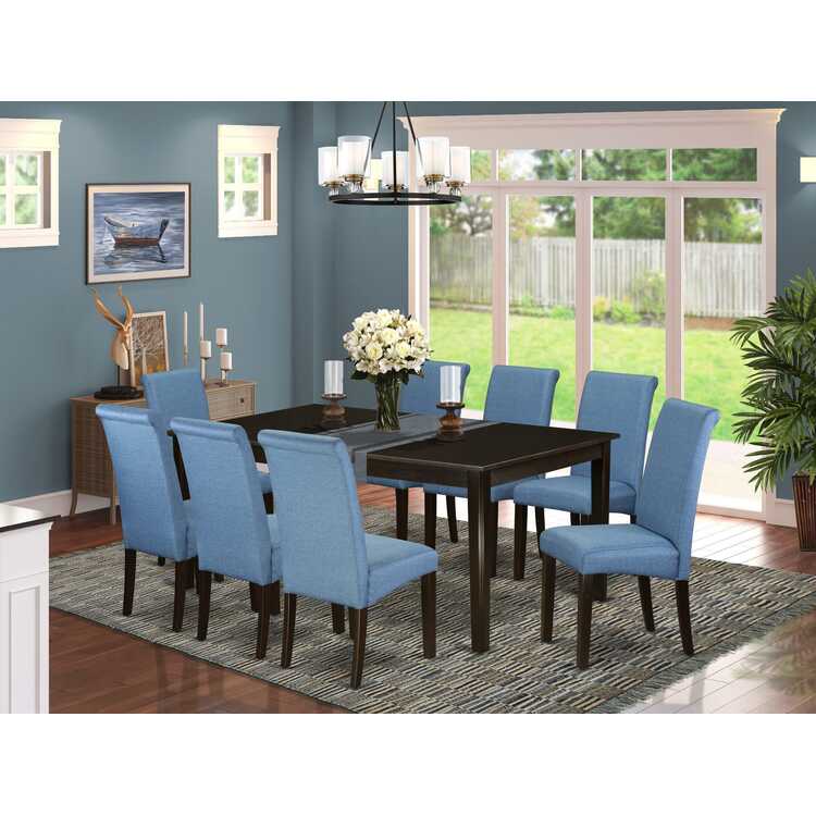 9 - Person Dining Set with Cappuccino Legs and Linen Blue Fabric Chairs - East West Furniture