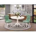 • Round Dining Table Set - Linen White Pedestal Table 2 Chair Furniture image - 1