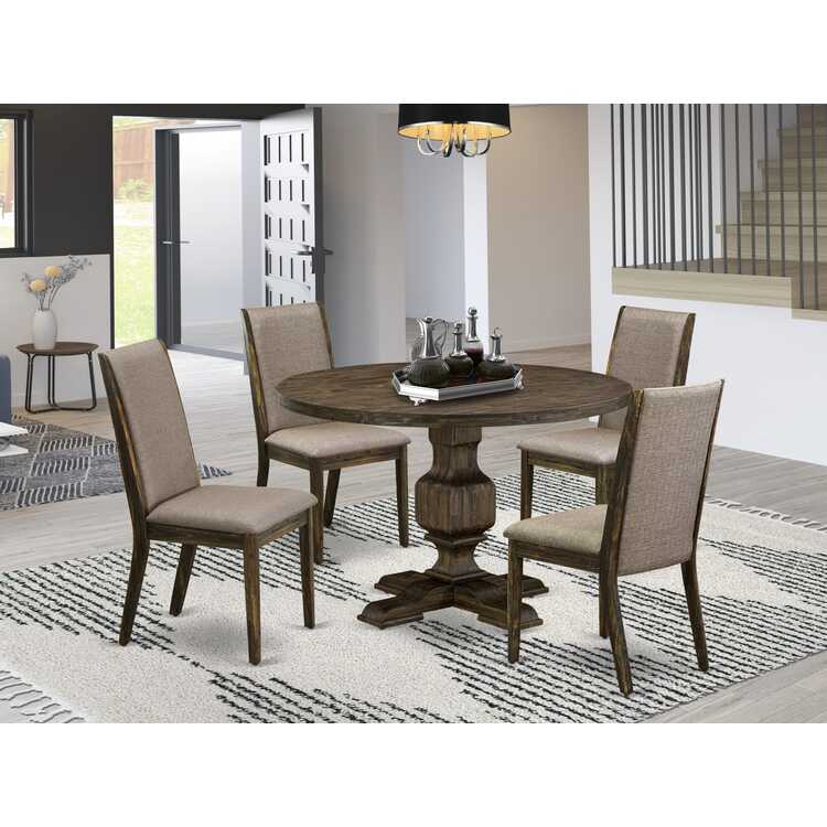 • Modern 5 Piece Dining Set - Round Table & 4 Linen Chairs image - 1
