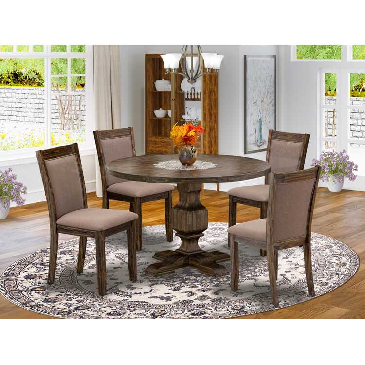• 48" Round Dining Set with 4 Linen Fabric Chairs image - 1