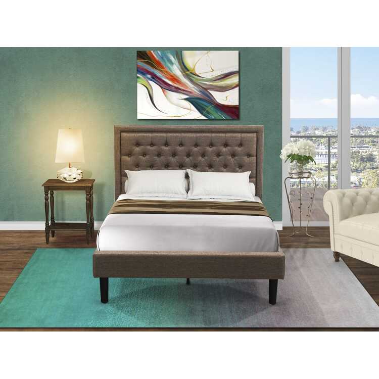 • Full Size Bed Set with Dark Khaki Linen Headboard and Nightstand image - 1