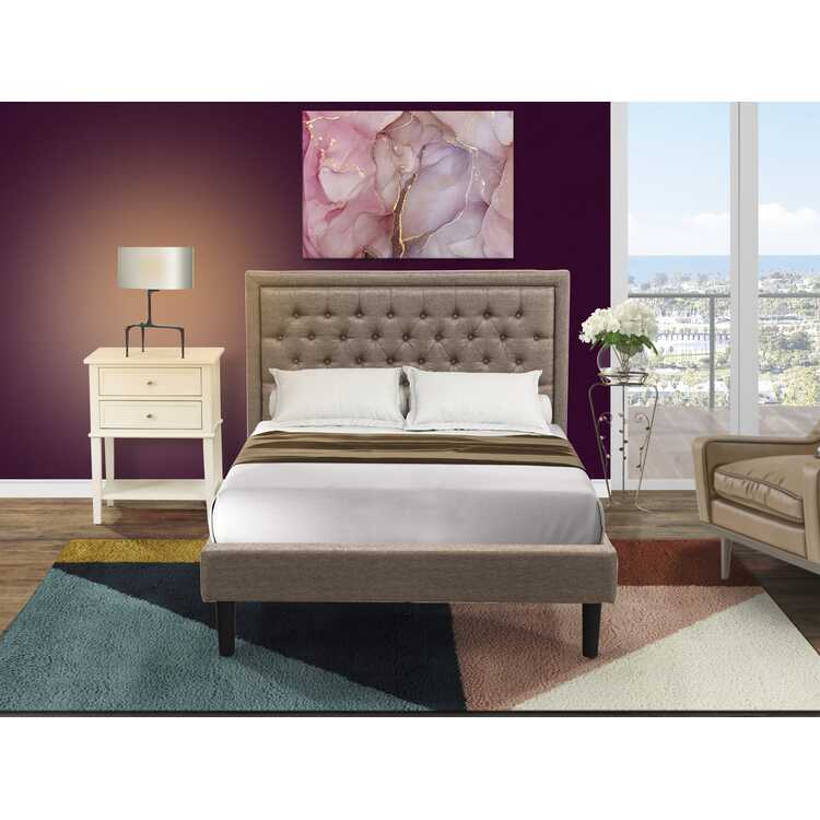 • Dark Khaki Linen Mid Century Wooden Platform Bed Set image - 1