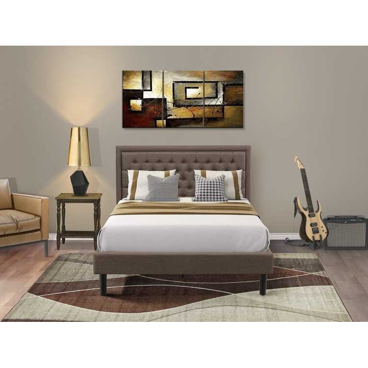 • Queen Size Bedroom Set - Brown Linen Bed Frame Night Stand image - 1