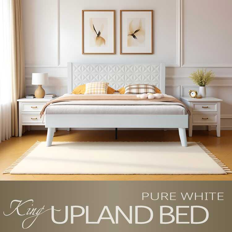 • East West Furniture King Size Solid Wood Platform Bed Frame with Headboard & Footboard, 12 Strong Slatted Base, Central Metal Legs, Easy Assembly, Noise & Slip-Free, No Box Spring Needed, Pure White Finish, UPK-39 image - 1