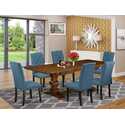 • East West Furniture LAEL7-81-21 7 Piece Dinette Set Consist of a Rectangle Dining Room Table with Butterfly Leaf and 6 Blue Linen Fabric Upholstered Chairs, 42x92 Inch, Walnut image - 1
