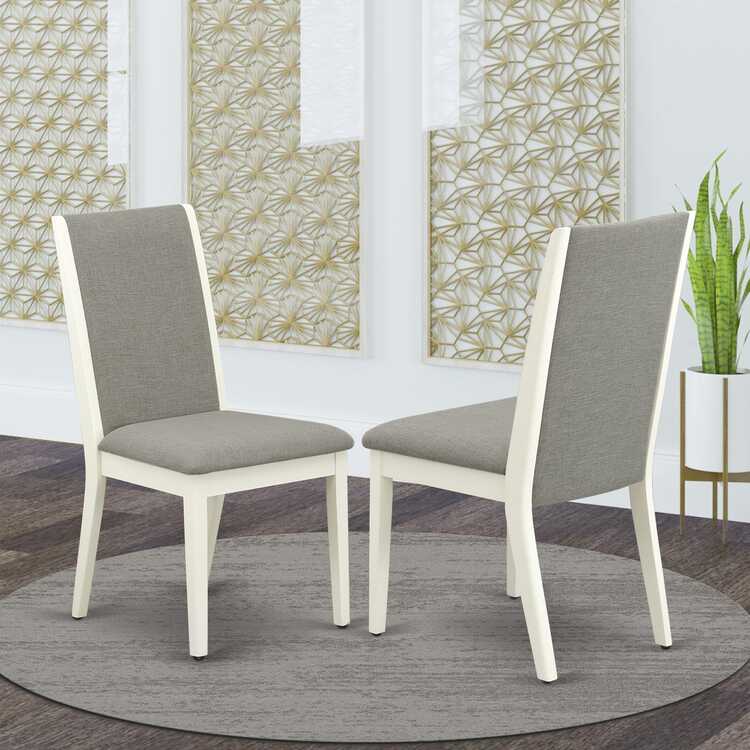 • East West Furniture LAP2T06 Lancy Parson Chairs - Shitake Linen Fabric Padded Dining Chairs, Set of 2, Linen White image - 1