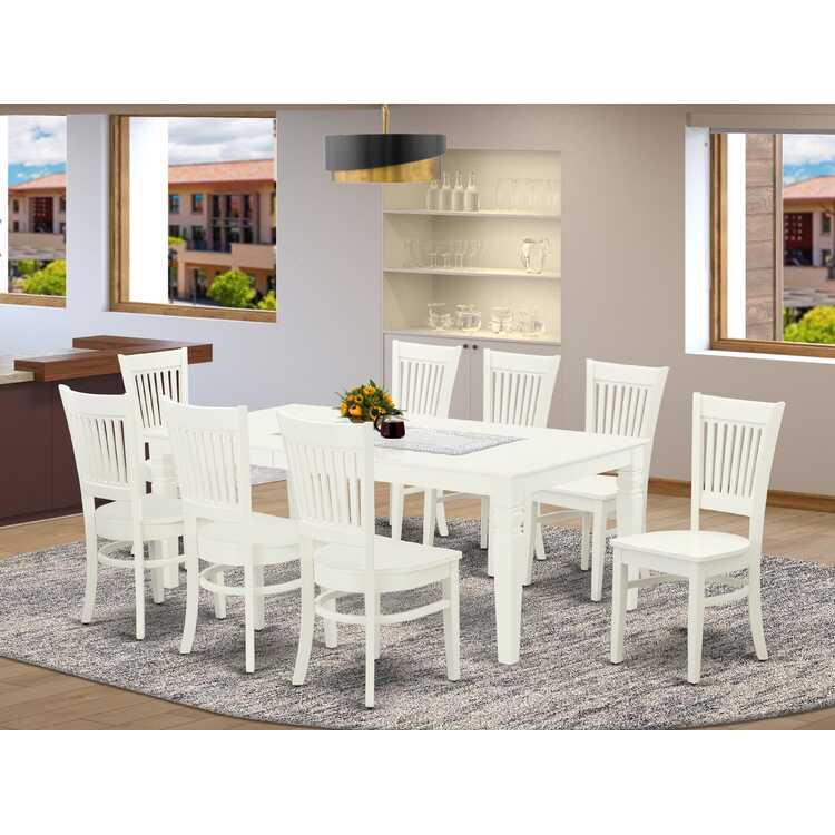 • Wood Dining Table Set - Linen White Finish 9-Piece Kitchen Table Set image - 1