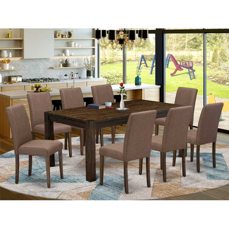 Rustic 9-Piece Dining Set - Table & 8 Linen Chairs
