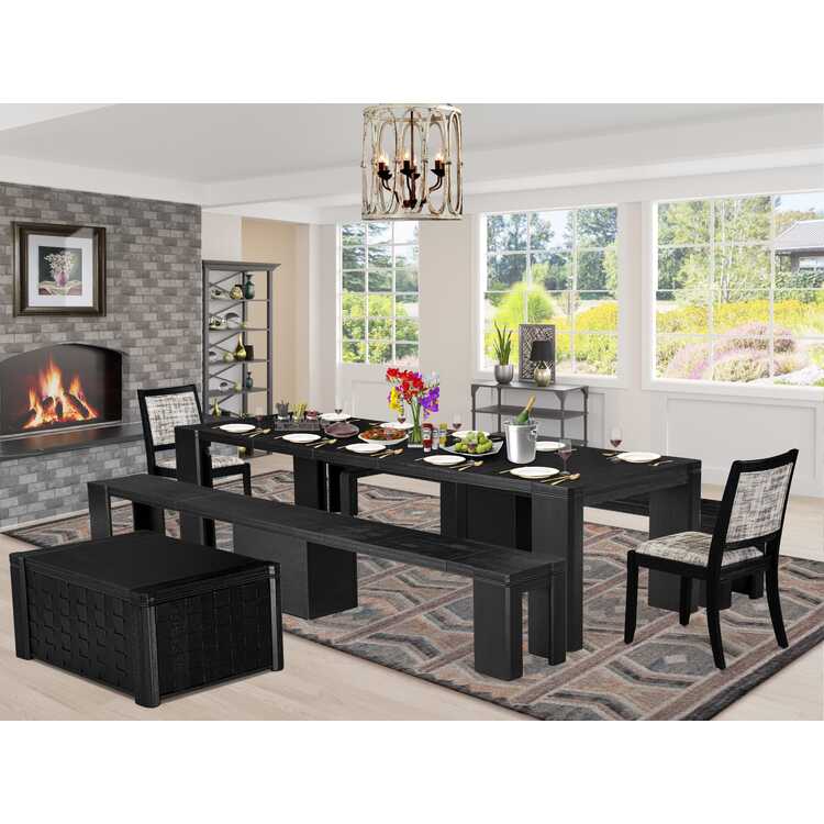 • Black Stackable Dining Set - Rectangular Table & 2 Benches image - 1