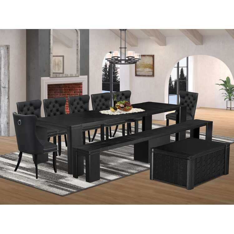 • Wire Brushed Black Acacia Wood Dining Set 10 Piece Rectangle image - 1