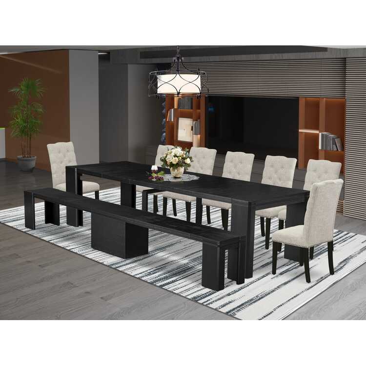 • 9-Piece Dining Room Table Set - Wire Brushed Black Finish image - 1