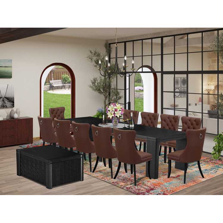 • Wire Brushed Black 14-Piece Extendable Dining Room Table Set image - 1