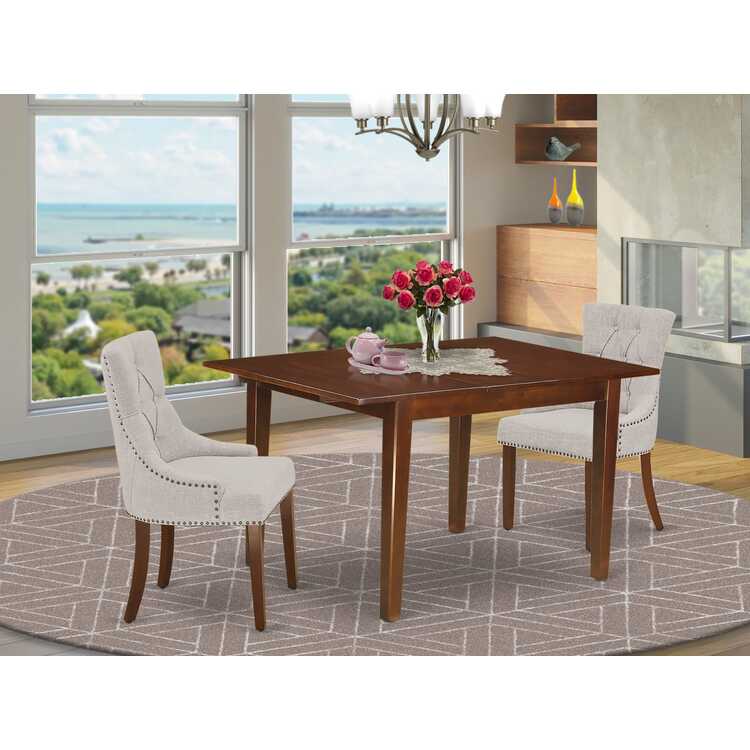 • Mahogany 3Pc Dinette Set with Butterfly Leaf Table and Doeskin Chairs image - 1