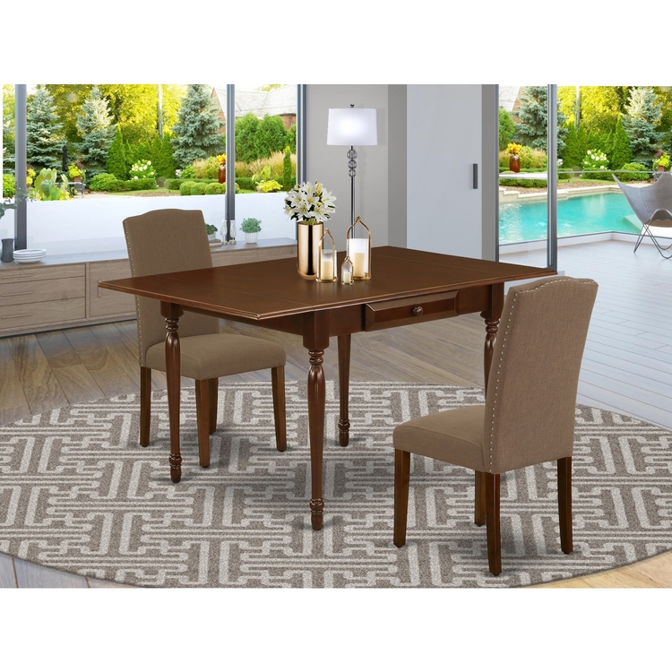 • Modern Dining Table & Chairs Set, Mahogany Finish, 3PC image - 1