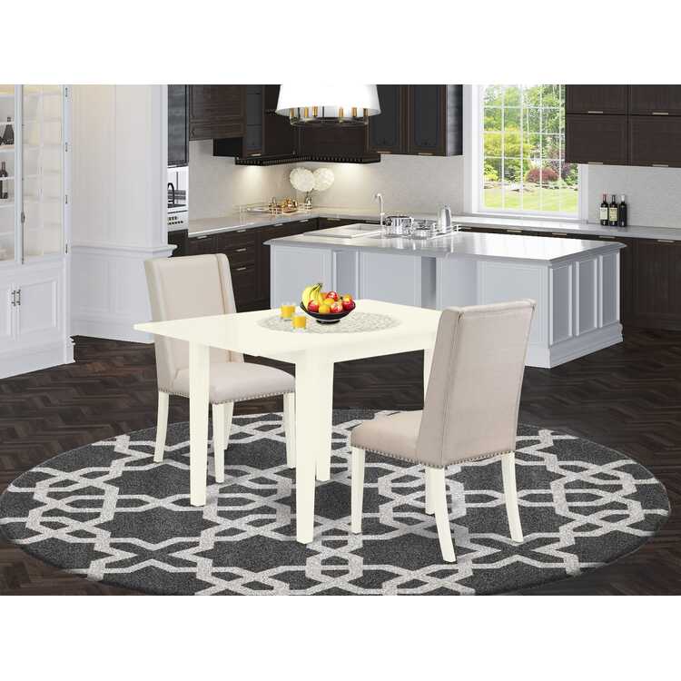 • Linen White Kitchen Table & Chair Set - 3 Piece Dining Set image - 1