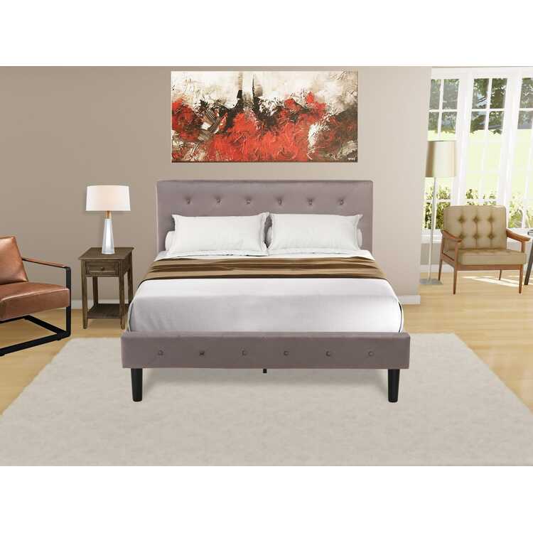 • Button Tufted Wood Bed Set with Velvet Headboard and Nightstand image - 1
