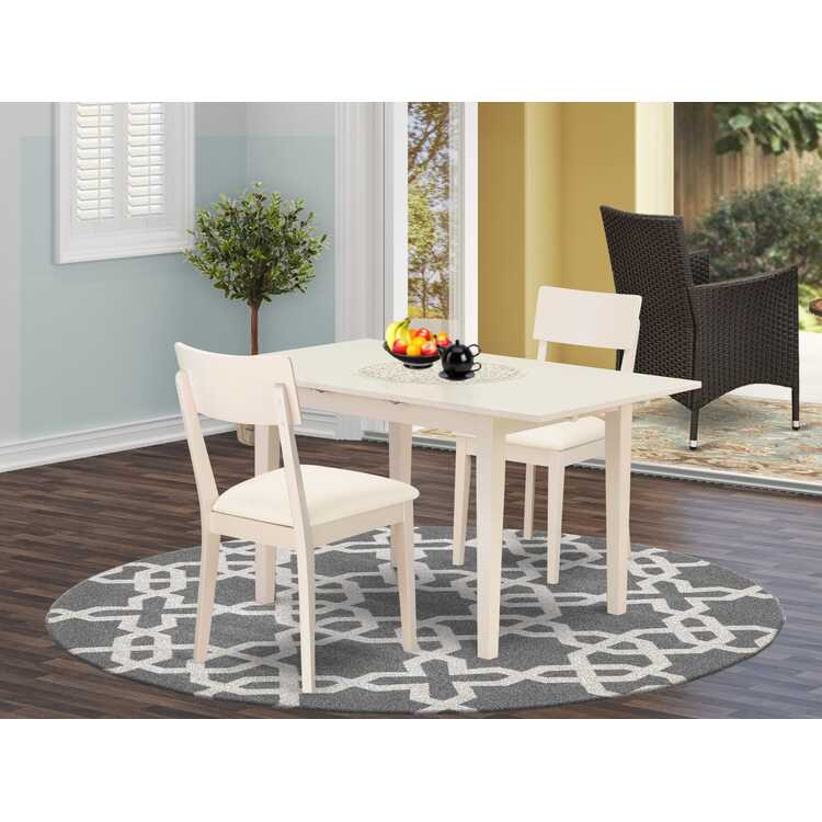 • Kitchen Dining Set Linen White Table Pu Leather Chairs image - 1