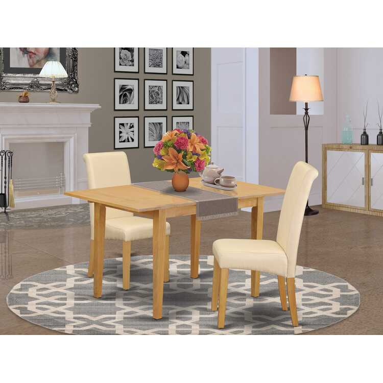 East West Furniture NOBA3-OAK-02 3 Piece Dining Room Set Contains a Rectangle Wooden Table with Butterfly Leaf and 2 Light Beige Linen Fabric Parson Dining Chairs, 32x54 Inch, Oak