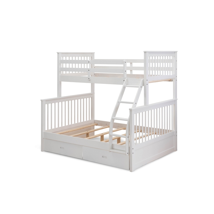 • East West Furniture ODB-05-WA beautiful bunk beds- two split beds, a ladder with five steps and the both beds safe due to guard rails and two drawers- Twin/Full-size bunk bed-Linen White Finish image - 1