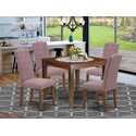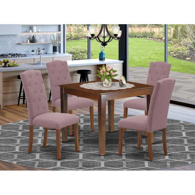 • Dining Sets Square Table Mahogany Chairs Dahlia Fabric 5Pc image - 1