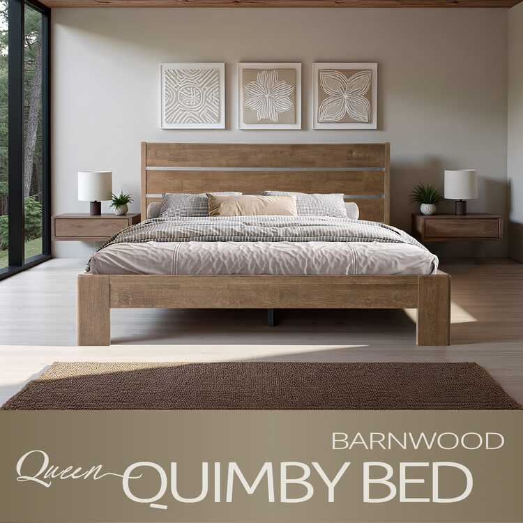 • East West Furniture Queen Size Bed Frame with Headboard & Footboard, Solid Wood Platform Bed, Metal Legs, 12 Durable Slatted Structure, No Box Spring Needed, Anti-Slip & Noise-Free, Easy Assembly, Barnwood Finish, QIQ-30 image - 1