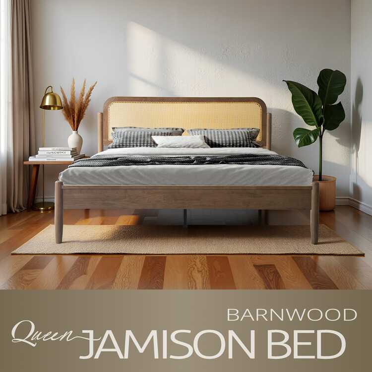 • East West Furniture Queen Solid Wood Size Bed Frame, Headboard & Footboard with Platform Bed, Center Metal Legs, 12 Heavy-Duty Slatted Base, No Box Spring Needed, Noise-Free & Slip-Free, Barnwood Finish, JMQ-30 image - 1