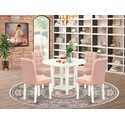 • East West Furniture SUAS5-LWH-42 5 Piece Dining Set Contains a Round Dining Table with Dropleaf & Shelves and 4 Chairs, Linen White image - 1