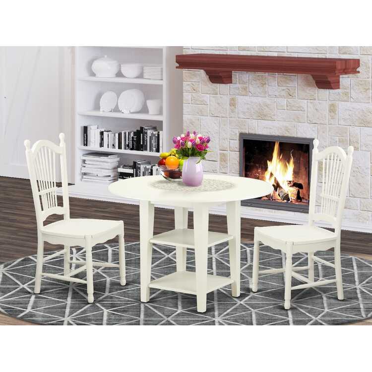 • Round Wood Seat Dinette Sets Linen White Finish image - 1