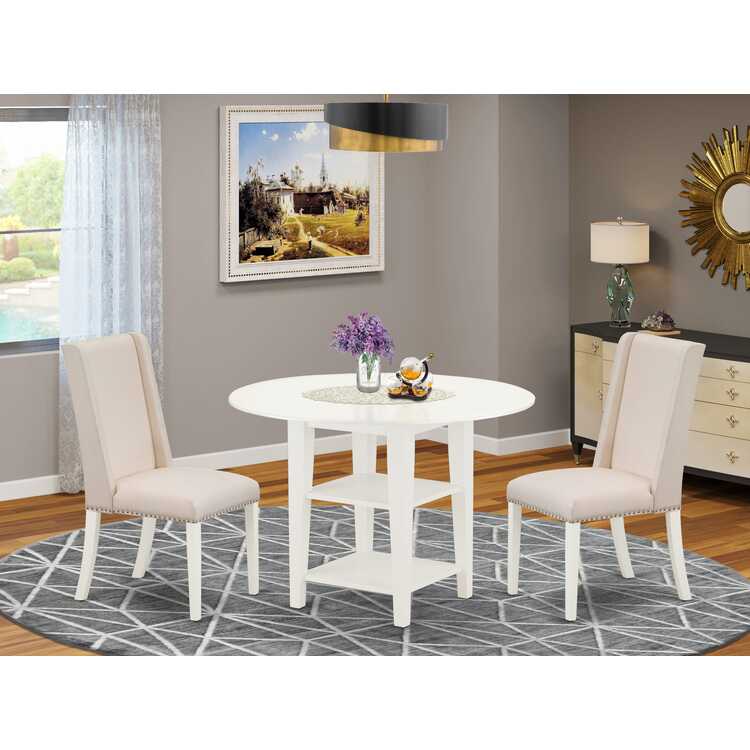• 3-Piece Round Dining Set - White Table & Chairs image - 1