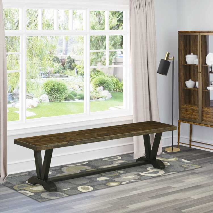 East West Furniture VB677 V-Style Modern Dining Table Bench with Wood Seat, 72x15x18 Inch, Multi-Color