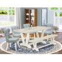 • East West Furniture V026SI215-6 6 Piece Kitchen Table Set Contains a Rectangle Dining Table with V-Legs and 4 Baby Blue Linen Fabric Parson Chairs with a Bench, 36x60 Inch, Multi-Color image - 1