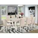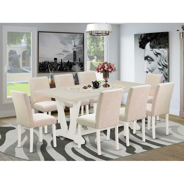 • East West Furniture V027AB202-9 9 Piece Dining Room Set Includes a Rectangle Dining Table with V-Legs and 8 Light Beige Linen Fabric Upholstered Chairs, 40x72 Inch, Multi-Color image - 1