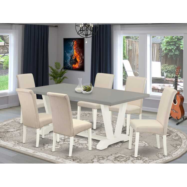 • East West Furniture V097BA201-7 7 Piece Dining Room Table Set Consist of a Rectangle Kitchen Table with V-Legs and 6 Cream Linen Fabric Parson Dining Chairs, 40x72 Inch, Multi-Color image - 1