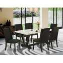 • East West Furniture V627FL624-7 7 Piece Modern Dining Table Set Consist of a Rectangle Wooden Table with V-Legs and 6 Black Linen Fabric Parson Dining Chairs, 40x72 Inch, Multi-Color image - 1