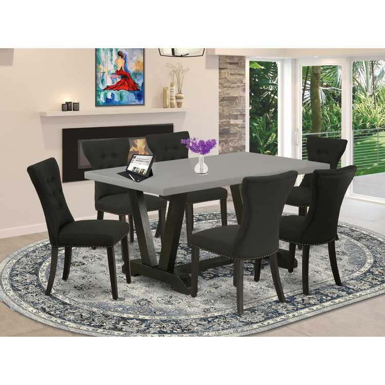 • Modern Dining Set - Table & 6 Chairs - Cement Wood Finish image - 1
