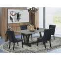Black Linen Fabric Dining Chairs & Cement Table Set