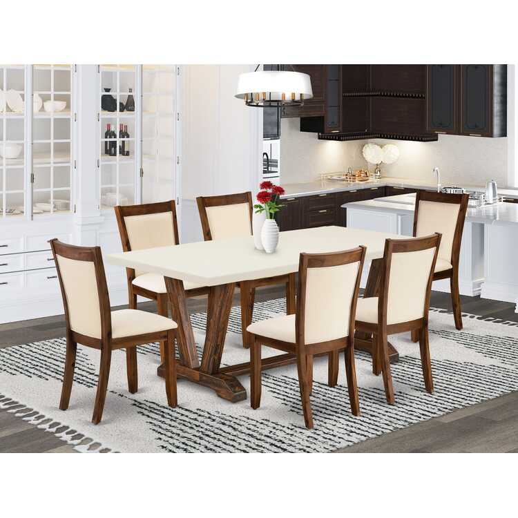 Dining Table & Light Beige Chairs 7-Piece Set