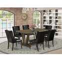 • Black Leather Dining Set Mid Century Distressed Jacobean Finish 7-Piece image - 1
