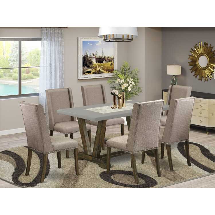 • East West Furniture V796FL716-7 7 Piece Dinette Set Consist of a Rectangle Dining Room Table with V-Legs and 6 Dark Khaki Linen Fabric Upholstered Chairs, 36x60 Inch, Multi-Color image - 1