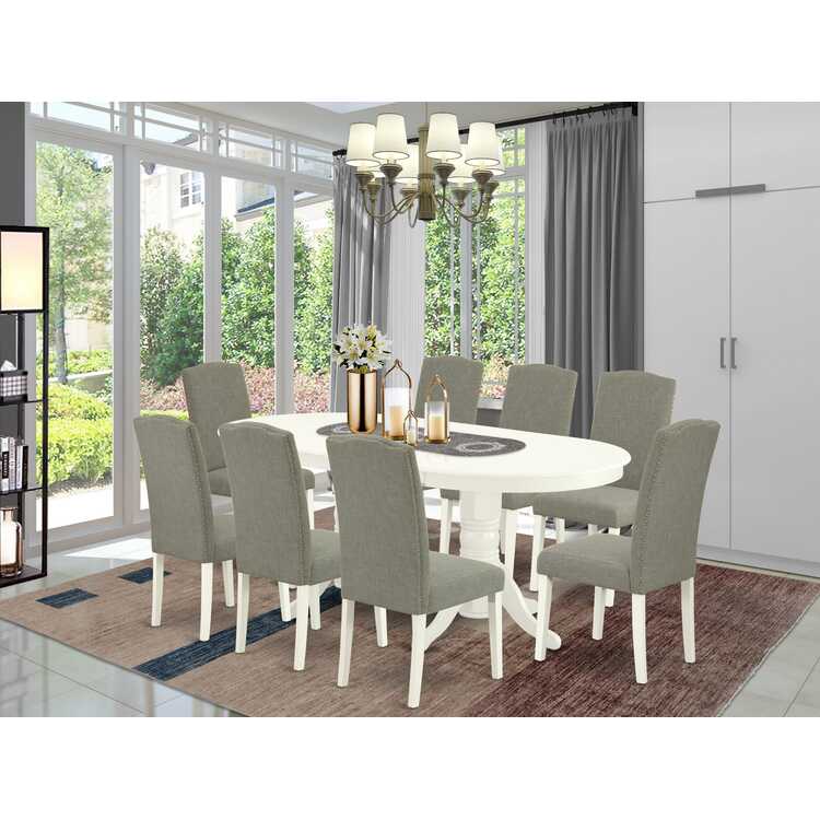 • Kitchen Dining Set for 8, Leaf Table & Parsons Chairs, Linen White & Dark Shitake Brown image - 1
