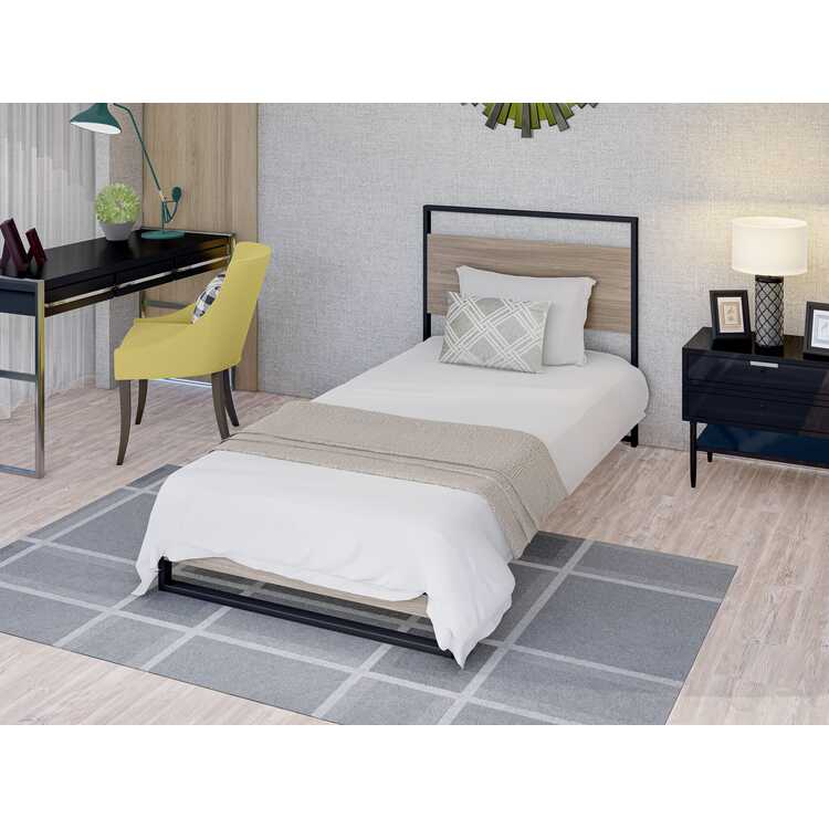 Metal Platform Bed with Weathered Wood & Powder Coating Black