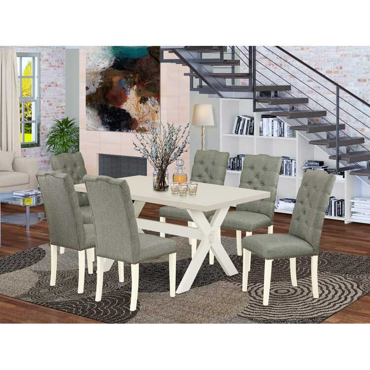• East West Furniture X026EL207-7 7 Piece Dining Table Set Consist of a Rectangle Dining Room Table with X-Legs and 6 Gray Linen Fabric Upholstered Chairs, 36x60 Inch, Multi-Color image - 1