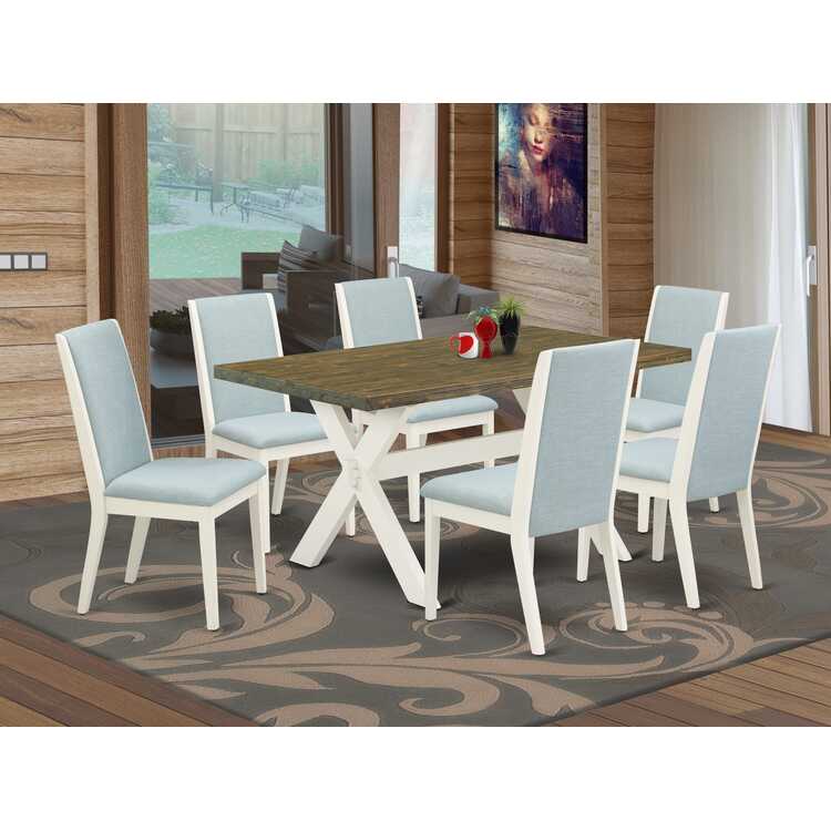 • 7 Piece Dining Set - Linen Fabric Parsons Chairs & Table image - 1