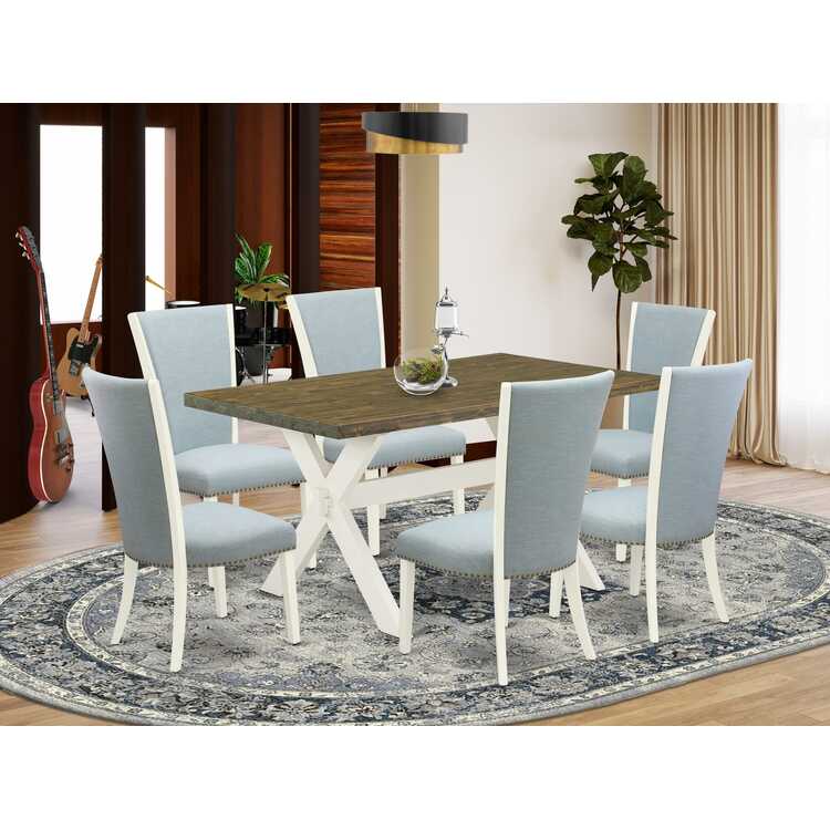 • Dining Room Table Set with Blue Chairs and Jacobean Wood image - 1