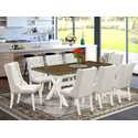 • White Leather Dining Room Chair Set with Rectangular Linen Table image - 1